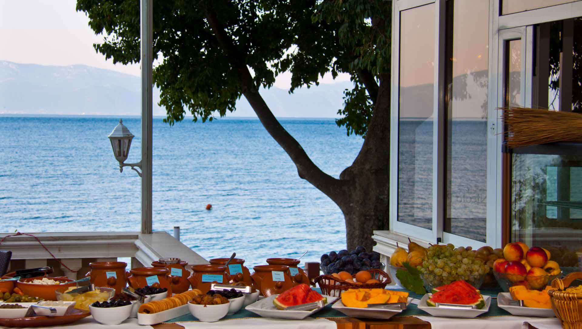 The food is served in a warm and tasteful atmosphere on open air terraces, with candle and moonlight, live music and attentive and educated staff. In early spring or late fall when weather not allows the cosyinterior of solid olive and walnut tree and Dalmatian white stone creates a warm and authentic ambienceand again with anever-endingsea view.